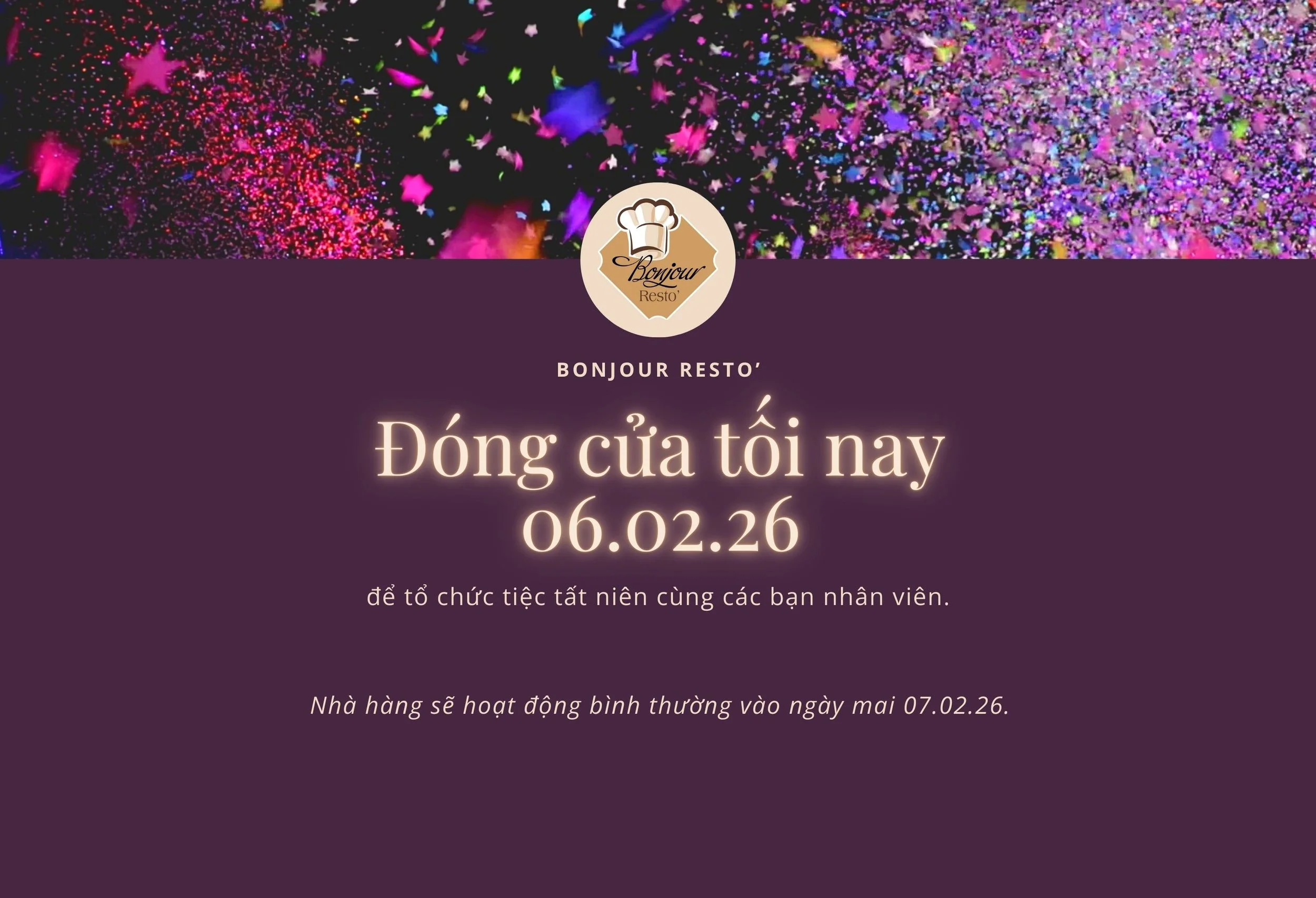 Nhà hàng Bonjour Resto’ cảm ơn bạn đang tham gia chương trình thành viên “tích điểm - hoàn tiền” trên hóa đơn.